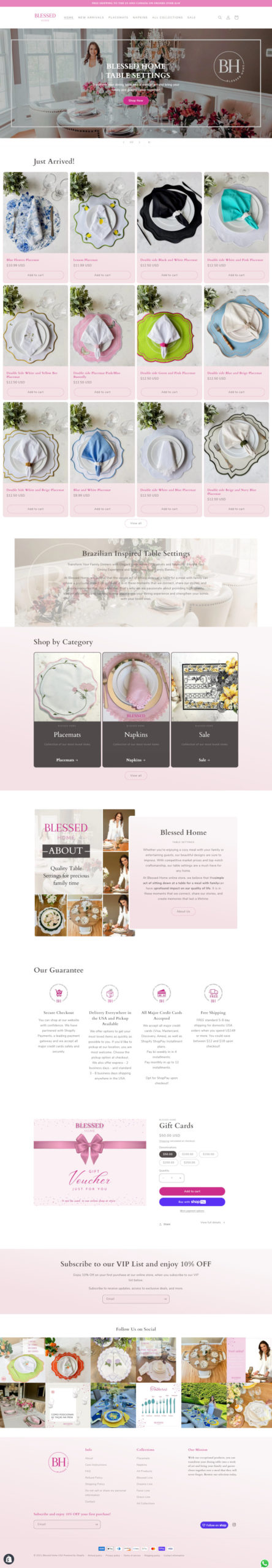 Blessed Table USA Shopify Store
